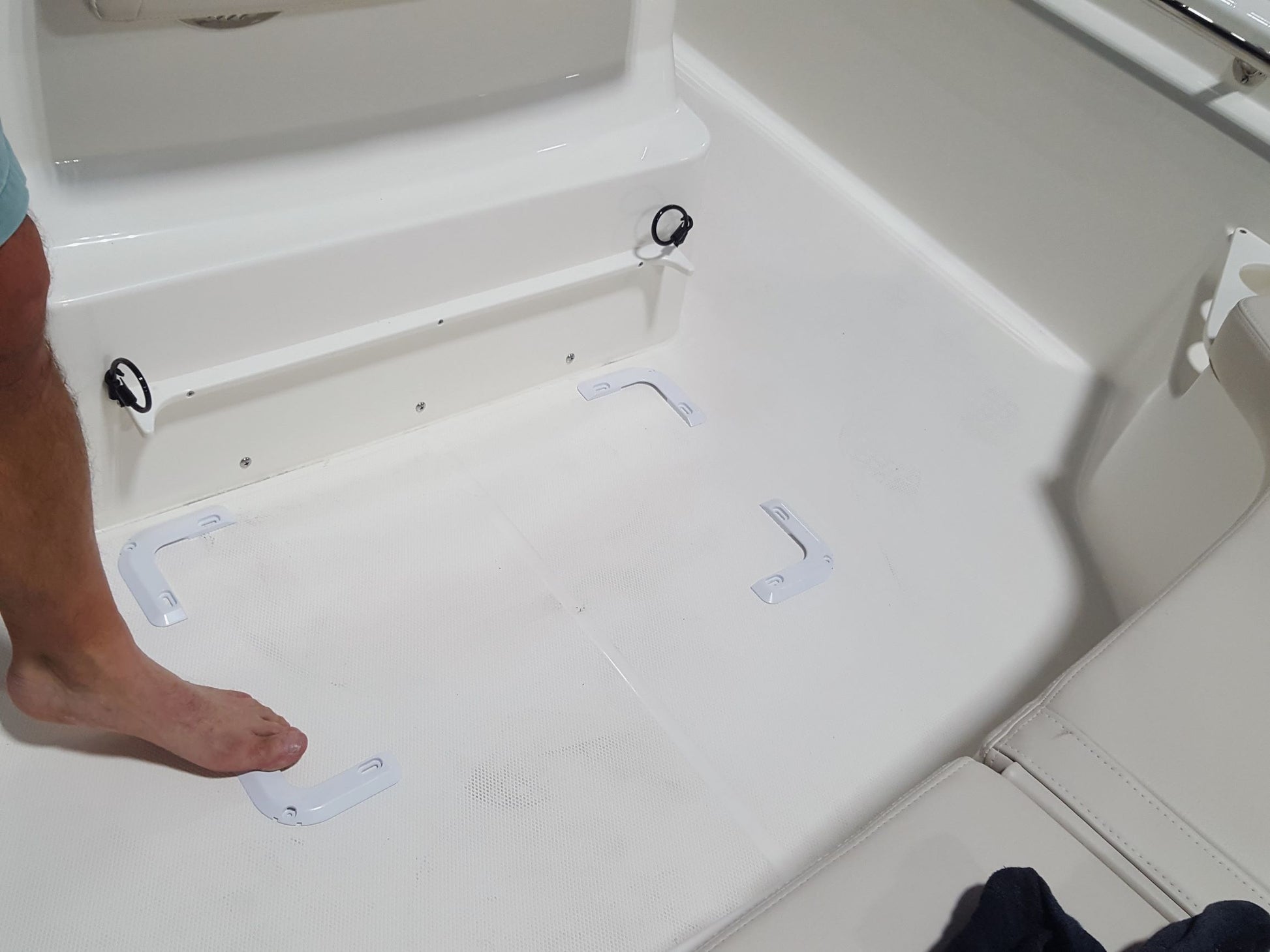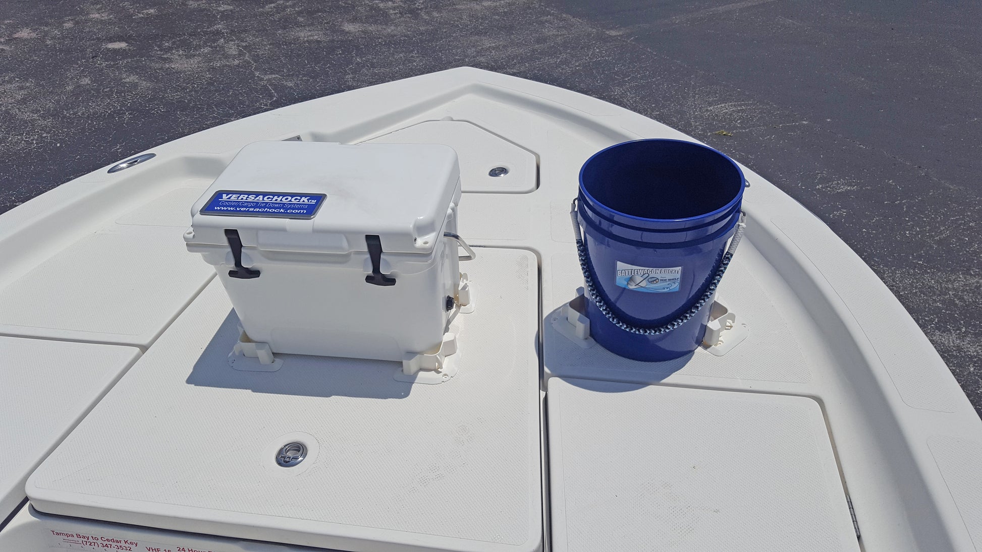 VersaChock cooler chocks keep coolers, fuel tanks, pails, and cargo in place on boat decks and truck beds. Remove chocks when not in use for a TRIP- FREE deck. Made with OEM quality UV resistant resin to withstand the harsh environment. Kits include stainless steel screws. Can also be installed using structural bonding adhesive. Available in white, black, and cream colors.