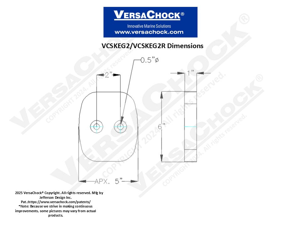 VersaChock's Removable outboard skeg rest plate is designed to protect swim platforms and decks from outboard motor skegs. Easily removes, leaving just the flush mount deck plate for a trip-free deck! Made with 1” thick HDPE. Includes mirror finish stainless steel oval threaded deck plate, bolts, and mounting screws. Dimensions (apx.) - 5.9" L x 5" W x 1" T.