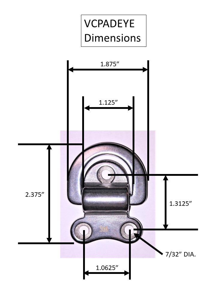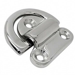 Folding stainless steel pad eye works great with tie downs (VCTIEDOWN) D-ring folds flat for a trip-free deck when not in use. Made with high quality 316 stainless steel. Install with three #10 (3/16”) oval head screws (not included).