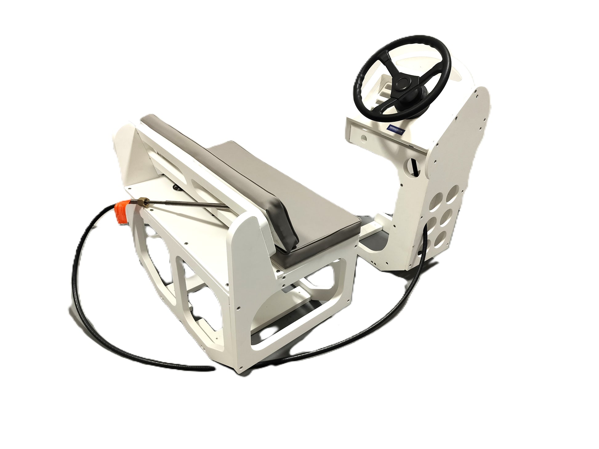 Versachock's seat is universal and fits most double hull (flat/partially-flat floor) rigid inflatable boats. The larger size is suitable for boats with remote steering and has ample storage space for electric motor batteries, remote fuel tanks, or cargo. It has a mounting footprint of 16"W x 19.3"D with 35 degree angles outboard of footprint. 5.3" pre-drilled holes fit most 6.5" speakers. It includes 2" thick marine grade vinyl cushion/seatback for comfort. Mounting screws not included. Overall dimensions- 30"W x 19.3"D x 25.6"T. Weight (no hardware)- 46 LBS